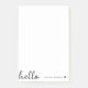 Um design de anotação de posto mínimo com um script manual na moda, grande citação de "olá", emparelhada com seu próprio nome e um simples coração negro. Projetado no estilo moderno mininalista em preto e branco simples e limpo. O presente personalizado perfeito ou acessório para qualquer época do ano!