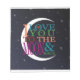 Frase colorida, "Ame-te à lua e às costas" com as estrelas noturnas e o céu atrás de uma lua parcial. Projetado por Simplesmente Posto pela Robin; certos elementos através da associação com a Fábrica de Gráficos