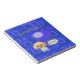 Puppy Spaceship Happy Birthday Notepad apresenta um personagem de desenho animado de aniversário fofo e engraçado, o filhote da série Popcorn Anime do Autor K.E.C. de "É Meu Aniversário!", Picnic do "Al" e "Vacinação" do Seashore e da espaçonave do filhote.
