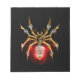 Aranha mecânica, com pá-pá de ouro, engrenagens de latão e uma lâmpada de vidro vermelha sobre fundo preto. Estilo Steampunk.