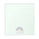 NewParkLane - Bloco de Notas Personalizado para Crianças com um arco-íris fofo, contra um fundo listrado verde da casa da moeda, e um modelo de texto para o seu nome ou outro texto pessoal. Fácil de personalizar no Zazzle com seu próprio texto para um design personalizado. Todos os estilos de texto, cores, tamanhos podem ser modificados para ajustado das suas necessidades. Veja esta coleção para itens correspondentes! Você tem desejos pessoais específicos de design? Sinta-se livre para me contactar!