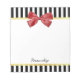 Faça qualquer nota especial com este elegante bloco de notas com listras verticais pretas e brancas, embelezadas com uma faixa colorida FAUX chic e uma imagem de um arco clássico do estilo fita vermelha. Personalize-o adicionando o nome daquela garota especial na sua vida. Imagem impressa plana, NÃO metálica ou arco real.