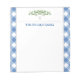 Este bloco de notas clássico de gingham azul foi projetado para coordenar com a coleção gingham da VG Invites. Ele apresenta uma ilustração de uma árvore com espaço para adicionar seu texto personalizado. Personalize com seu nome familiar, monograma ou o que quiser. Para ver mais designs de pré-disquete com verificações de xadrez, visite www.zazzle.com/vginvites