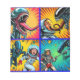 Astronautas em roupas elegantes e retro-futurísticas à medida que se deparam com aliens gigantescos e ferozes no estilo de pop de quadrinhos — criaturas vívidas e grotescas de com cor azul-metalúrgica. Suas longas línguas pingam com saliva ácida que pode corroer o metal mais forte encontrado em qualquer planeta A batalha gira com linhas de movimento exageradas, efeitos sonoros exagerados—ZAP! BAM!—e imagens dramáticas e de alto contraste que dão à cena uma energia dinâmica e surreal.