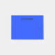 Um bloco de notas de post-it azuis simples com um modelo preto do texto.