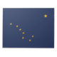 Esta design apresenta a bandeira do Alasca, que é um estado no extremo noroeste da costa oeste dos Estados Unidos, do outro lado do estreito de Bering, da Ásia. Um exclave dos Estados Unidos, faz fronteira com a província canadiana da Colúmbia Britânica e o território de Yukon a leste e sudeste e tem uma fronteira marítima com o Okrug autônomo russo de Chukotka a oeste. Ao norte estão os mares Chukchi e Beaufort do Oceano Ártico, e o Oceano Pacífico fica ao sul e ao sudoeste. A maior cidade do Alasca em Anchorage, enquanto a capital estadual em Juneau. O apelido do Alasca é "A Última Fronteira". A bandeira estadual do Alasca inclui oito estrelas douradas, formando o Urso Grande e o Polaris, num campo azul escuro.