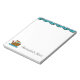 Bloco de notas bonito adequado para qualquer mesa em qualquer escritório ou escola. No canto inferior esquerdo está um pequeno rebocador de desenho animado. Tem um fundo marrom de madeira e uma cabana creme com telhado vermelho, uma porta de madeira marrom e uma janela azul redonda. Na parte de trás do barco está uma bandeira vermelha acenando na brisa. O reboco está navegando no mar azul aberto. Ao lado do barco em rico, a letra preta é uma modelo para adicionar seu nome ou outro texto para personalizar este bloco de notas. No topo da plataforma estão algumas ondas azuis para terminar este tema náutico.