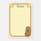 Notas bonitas com um kawaii, desenho animado, batata marrom no canto inferior direito. No topo das notas estão duas estrelas amarelas felizes de ambos os lados da palavra Notas que é de cor castanha. A área para escrevendo suas anotações está em um amarelo pastel com uma borda marrom-clara pastel. o fundo é uma laranja pastel com pequenas bolinhas brancas. Ideal para adicionar material escolar aos seus filhos.