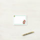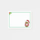 Uma adorável batata feliz de Natal ostentando um divertido bigode e barba brancos e usando um chapéu e terno vermelhos e brancos do Papai Noel senta-se no canto inferior direito destas adoráveis notas. No canto superior esquerdo estão duas folhas verdes de azevinho com bagas vermelhas brilhantes.