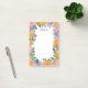 Beautiful tall sticky notes personalized with your name. The floral frame printed like a border around the page will bring a sunny vibe to your desk, its flowers buttery yellow and softly pink. The floral border is drawn in a modern abstract style with lots of greenery in blue and green.