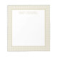This cute gingham plaid notepad in classic shades of soft beige and white can be personalized with your choice of name or special text. Great for gift bags and party favors.