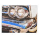 O clássico carro americano de 1950. Vista parcial dos faróis, da roda dianteira e de um pára-choque