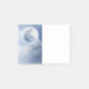 Notas pegajosas com um céu de fantasia mágico com nuvens azuis e uma lua grande e bonita. 2 cisnes brancas voando juntas.