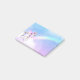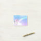 Notas pegajosas com uma imagem de um unicórnio com grandes olhos azuis, asas cor-de-rosa e um arco-íris e cauda. Kawaii fofo.