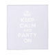 Baseado no original Manter Calmo e ... poster, este creme e azul Manter Calmo e Partido no Notepad apresentam uma fonte projetada personalizada que corresponde ao original.