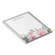Flores rosa embebidas em aquarela Elegante e Bloco de notas verde com personalizável " a partir da mesa de " e modelos de nome.