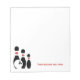 Bola de boliche e pinos vermelho preto do bloco de notas personalizado apresentando um ícone minimalista de três pinos de boliches pretas com faixas vermelhas, uma bola e seu texto sobre fundo branco.