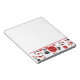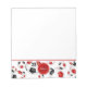 Este bloco de anotações temático de futebol divertido apresenta esferas de futebol vermelho, preto e branco organizadas aleatoriamente, com tamanhos variados na sua borda inferior, com nome e monograma fáceis de personalizar, em um pendante de círculo vermelho coordenado e número de camisa em uma das bolas de futebol, por katz_d_zynes