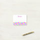 Design gráfico de um teste padrão de bolinhas colorido em um fundo cor-de-rosa. Você pode personalizar as notas de post-it com seu próprio nome ou você pode delate o nome se você quer.