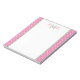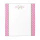 Este bloco de notas pré-definido apresenta bolinhas clássicas cor-de-rosa e brancas e uma borda verde com um monograma que você pode personalizar em cor-de-rosa e verde.