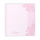 Folhagem e floral cor-de-rosa pálido nos cantos deste design muito bonito, com uma seção alinhada para escrever notas, e o seu nome texto em escrita elegante.