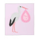 Este notável bloco apresenta uma imagem gráfica de uma bela Stork branca com penas pretas de cauda segurando-as num conjunto rosa pálido de cobertores. Há um texto cor-de-rosa no pacote que diz "Menina". Esta design é perfeita para celebrar uma menina.