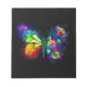 Arco-íris, borboleta monarca luminosa, pintada artisticamente com buquê de rosas iridescentes, brilhantes e luminescentes sobre fundo preto. Borboleta-arco-íris.