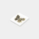 Borboleta de flores Dourada com orquídea de joias pretas, decorada com folhas de ouro sobre fundo branco.