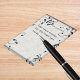 Bloco de notas Notas de posto. Belo design de casamento com símbolos de música, folhas e uma silhueta de borboleta. Um panelamento colorido de madeira e design de fundo texturizado. Isso é ideal para casamentos, aniversários e ocasiões especiais. Personalize este modelo com suas informações. Edite-o para mais alterações.