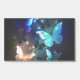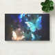Fabulosa, brilhante, azul e amarela, borboleta noturna sobre fundo escuro.