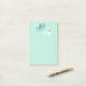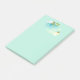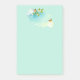 Notas adesivas 4x6. Estilos de abstrato desenhados com círculos e formas irregulares. A cor é um verde-verão calmante, turquesa e amarelo. Um casal de borboletas laranja e amarelas pairando em torno de algumas flores delicadas, floridas, com folhas verdes e ramos marrons. Tem um olhar novo, encantador e mágico para ele.