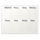 Defina seus planos semanais com este organizador simples. Primeiro, anote suas prioridades para a semana como uma lista de verificação - normalmente não mais do que 5 prioridades! Em seguida, anote seus principais objetivos/planos para cada dia da semana e verifique-os um por um. No verso da página você pode escrever um resumo do quão bem você fez aquela semana. Havia algo que você poderia ter feito melhor? Alguma maneira de otimizar os seus dias? Este planejador está em um simples script preto em negrito, com seções ouro em linhas amarelas para cada dia da semana. Você também pode personalizar o planejador alterando os títulos de cada seção e o script.