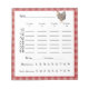 O maravilhoso cartão de mesa Bunco checado com gingham vermelho é perfeito para o evento Bunco, do oeste do seu país, chamado "hilly billy". O cartão de pontuação fácil de ler inclui o de Baby Bunco. Design inclui um frango "primavera" fino para enrolar.