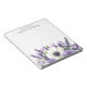 Um belo bloco de anotações personalizado com um delicado buquê floral de flores roxas e brancas contra o verde-luxuoso. O arranjo elegante decora borda inferior, criando um design sofisticado e na moda perfeito para adicionar um toque pessoal às suas notas e correspondência.