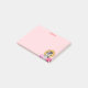 Notas Elegantes de Post-it com cachorro fofo com girassol e flor rosa em fundo cor de rosa.