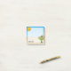 Cartoon de cacto sorridente com óculos de sol na paisagem desértica segurando uma caneca de cerveja e dando polegares para cima. Texto personalizado.