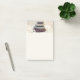 Notas pegajosas com uma fotografia com pilhas de rochas sobre si. Cercado por rochas brancas soltas e pequenas flores brancas.