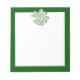 Bloco de notas de 5,5" x 6", uma imagem de um trevo de quatro folhas cheio de shamrocks e chapéus de topo em branco e um espaço escrevendo em branco com uma borda verde-escura. Consulte notebook correspondente. Veja a Rua inteira. A coleção do Bloco de Notas do Dia de Patrick sob a categoria OFFICE na seção HOLIDAYS. Este produto não está associado nem afiliado ao titular original dos direitos de autor.