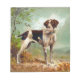 Cão caçador com pássaro na boca. Desenho colorido da safra. Retriever com pele de caçador colorida
