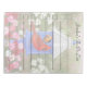 Uma cena lindamente pintada de cardeais vermelhos fazer sua casa em uma brilhante casa de pássaros azuis cercada por um jardim florescendo com madeira de cachorro e flores coloridas cor-de-rosa, vermelha e do cosmos branco. Trabalho de arte realista criada de uma pintura do artista da vida selvagem Crista S. Forest.