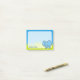 Um desenho animado de elefante azul e bonito sobre a grama e fundo do céu. Texto personalizado.