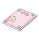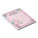 Tão doce e fofo, personalize este belo bloco de notas flamingo com o nome de qualquer um. Apresenta bolinhas cor-de-rosa e flores festivas cor-de-rosa, azuis e amarelas. Clipart de Capuerza Sketch.