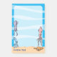 Três bonitinhos desenhos de lula e uma casca de triton. Paisagem submarina. Texto personalizado.
