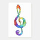 Poligonal, arco-íris, chave musical brilhante sobre fundo branco. Tatuagem de polígono. Limpo de árvores