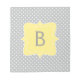 As bolinhas brancas-escuras estão sobre um fundo de cinza leve. Um quadro de monograma amarelo pode ser personalizado com o seu primeiro plano.