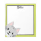 Um bloco de anotações bonito com um gato cinza curioso, pronto para espreitar em cada nota escrita na sua mesa.