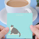Um gato preto e branco fofo e doce sobre um fundo azul vibrante. Material de papelaria correspondente disponível! Papelaria personalizada para gatos concebida e ilustrada especialmente para amantes de gatos.