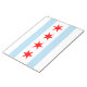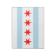 Esta design apresenta a bandeira civil de Chicago, que consiste em dois bares horizontais azuis-claros, ou faixas, sobre um fundo branco. A cidade de Chicago é a cidade mais populosa do estado de Illinois nos Estados Unidos, e uma das cidades mais populosas em todos os Estados Unidos; é também a cidade mais populosa no meio oeste dos Estados Unidos. Chicago é a sede do Condado de Cook. Chicago é conhecida como "Cidade Vergonha".
