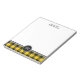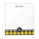 Bloco de notas personalizado com borda de xadrez e monograma. Padrão tradicional de xadrez escocesa em amarelo vivo e preto, com sotaques vermelhos.