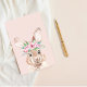 Bloco De Notas Coelho de aguarela rosa pastel moderno com flores